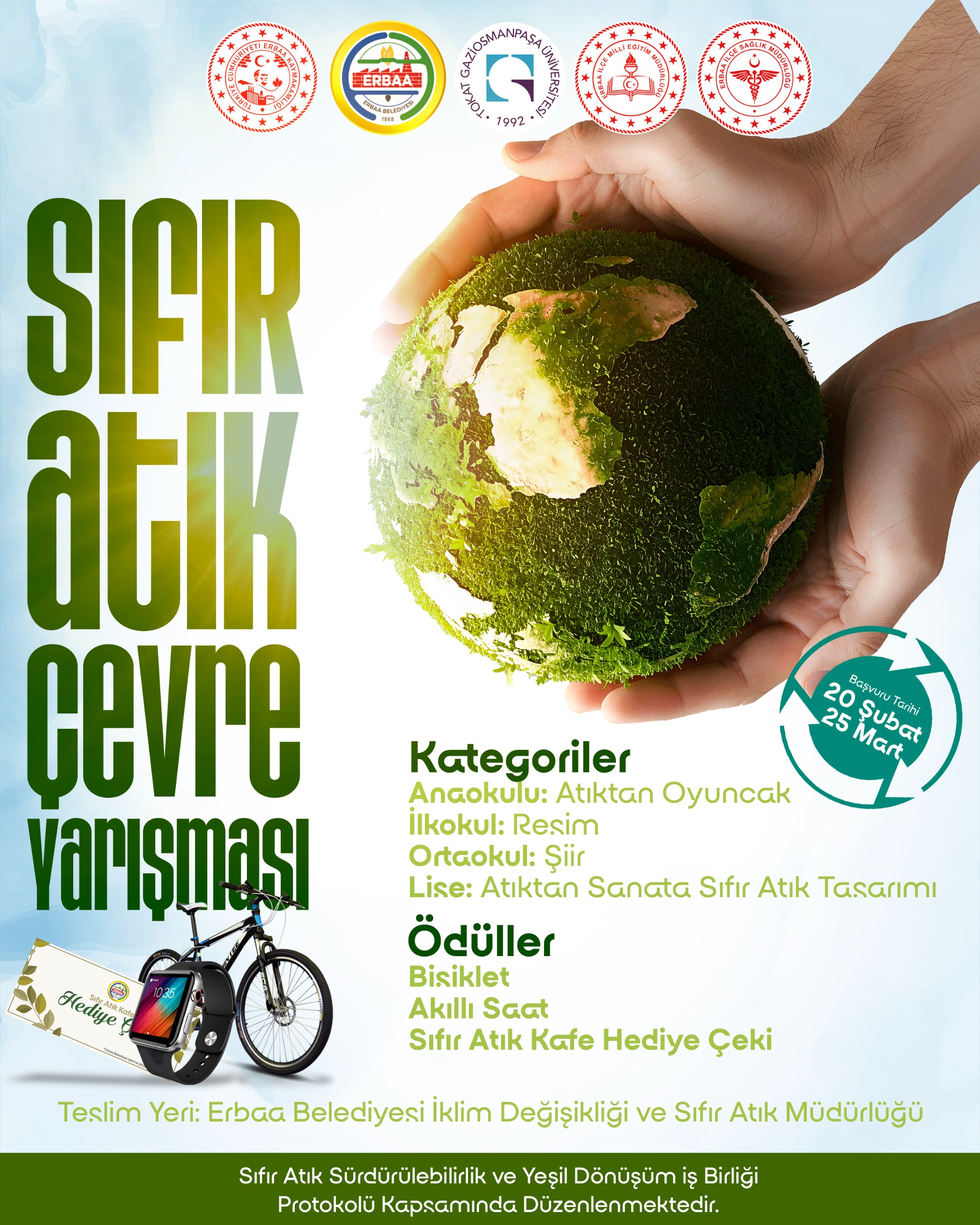 Erbaa Belediyesi İklim Değişikliği ve Sıfır AtıkbMüdürlüğü tarafından 30 Mart Uluslararası Sıfır Atık Günü kapsamında Çevre ve Sıfır Atık, konularında, Resim , Şiir, Atıktan Sanata Sıfır Atık Tasarım Yarışması ...